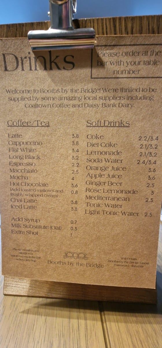 Booths by the Bridge Menu